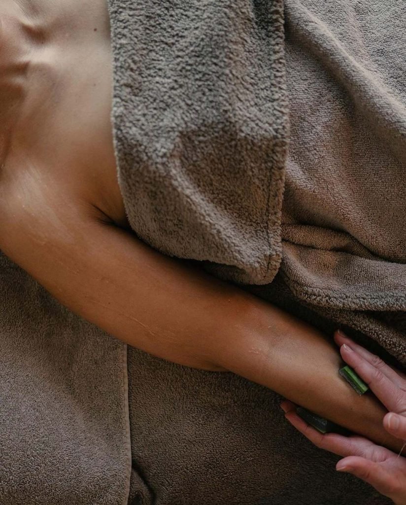 Vartalo kuoritaan raakasilkkihanskoilla, sen jälkeen tehdään kehon kosteutus ja rentouttava kokovartalohieronta. Hoidossa käytetään luonnonmukaista öljyä ja vartalovoidetta.